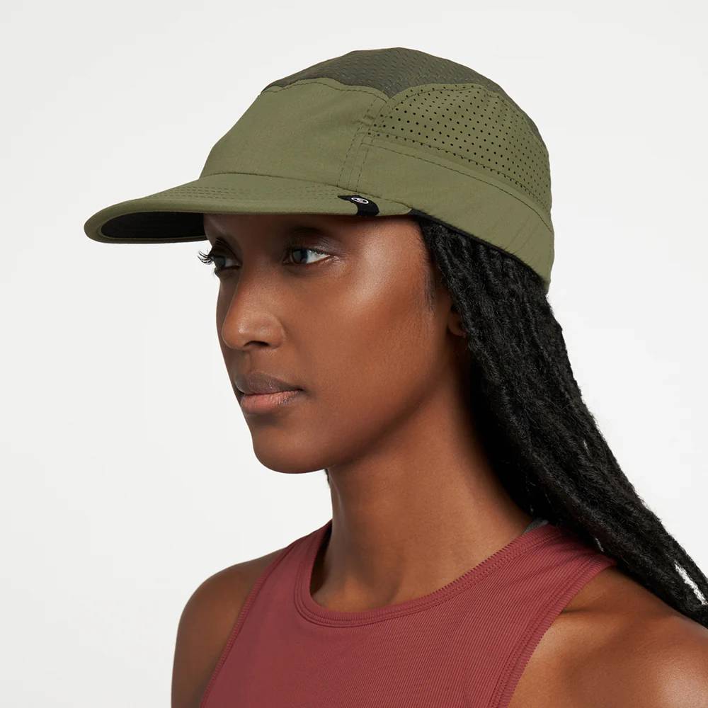 The original, the archetype, run ready and very much every day GOCap EVD. A PFC-free DWR treated, fully recycled nylon rip stop fabric on front panel and brim, laser etched on the side panels for breathability. Japanese recycled knit fabric top panels, coupled with COOLmatic | PLUS™ sweatband for run ready breathability, cooling and anti odour. our industry leading SOFTflat brim elevates long wearing comfort.