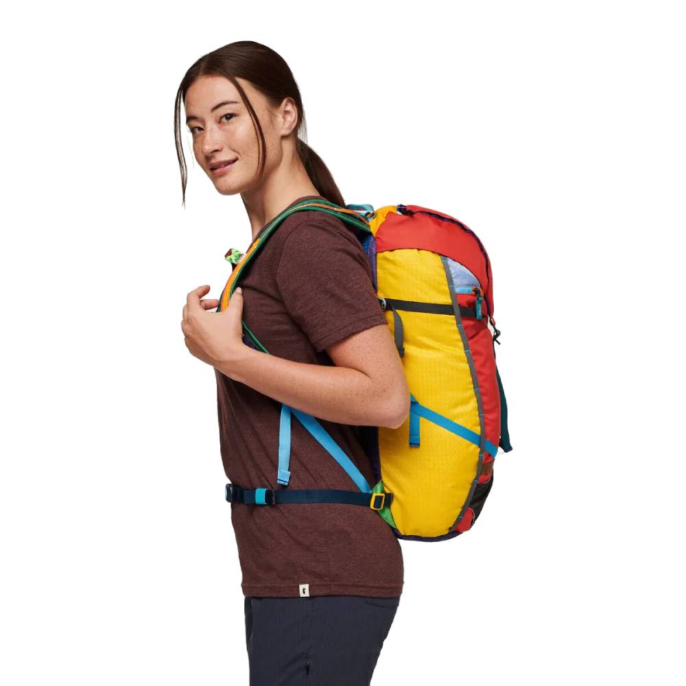 A hydration sleeve, low profile shoulder straps, and a removable waist belt make the Tarak perfectly suited for backcountry skiing and day hiking as well. Like all of our Del Día items, each Tarak is made with repurposed materials, which means no two are alike.