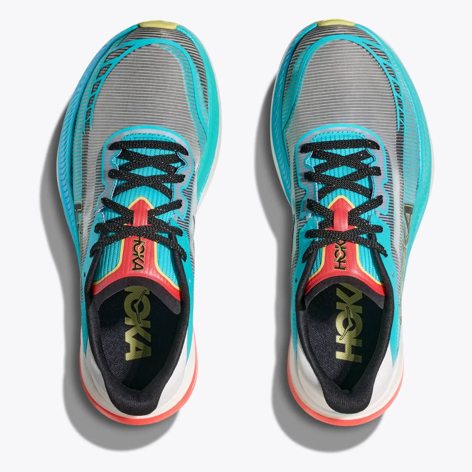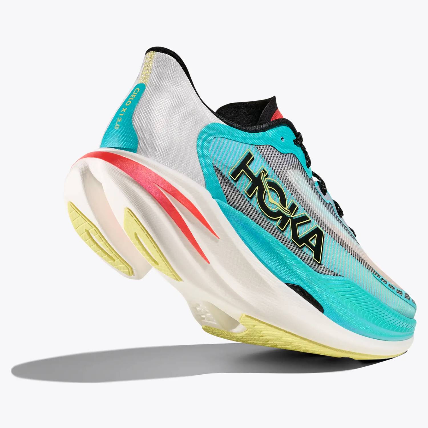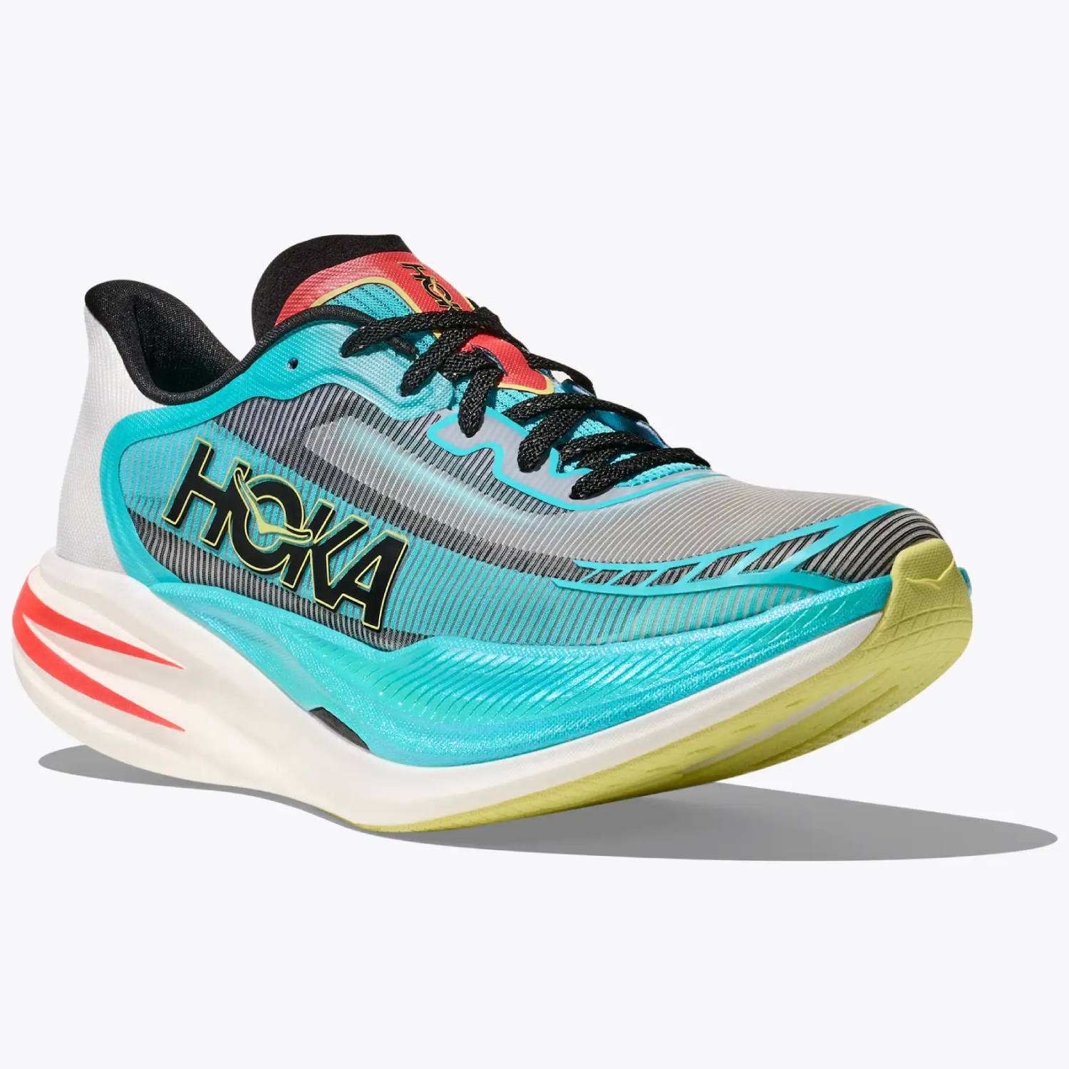 A tip-of-the-spear product tuned for higher tempo pickups, the Cielo X1 2.0 is a must for speed seekers. Engineered with an aggressive forefoot rocker and ultra-responsive dual-density PEBA midsole with snappy carbon fibre plate, this pace-pushing road racer has been finished with a light, breathable upper. Designed with dynamic cutouts for weight savings and a cushioned collar to ensure secure foot lockdown, we’ve employed a sticky rubber outsole for improved traction when chasing those PBs.