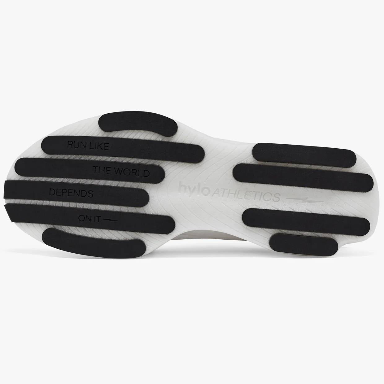 Outsole: Inspired by Formula 1 tyres and their ability to displace water and increase traction, the cutouts between the rubber pods reduce weight and increase ground contact when wet. Made with 60% natural rubber, 2.5mm thick.