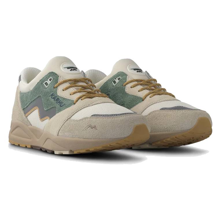 Discover the KARHU Aria 95 Turtledove / Iceberg Green, a sneaker that brings retro design and premium comfort together in a bold lifestyle sneaker. Originally introduced in the 90s, this iconic model stands out with its streamlined silhouette, rich material mix, and signature mono-tongue construction.