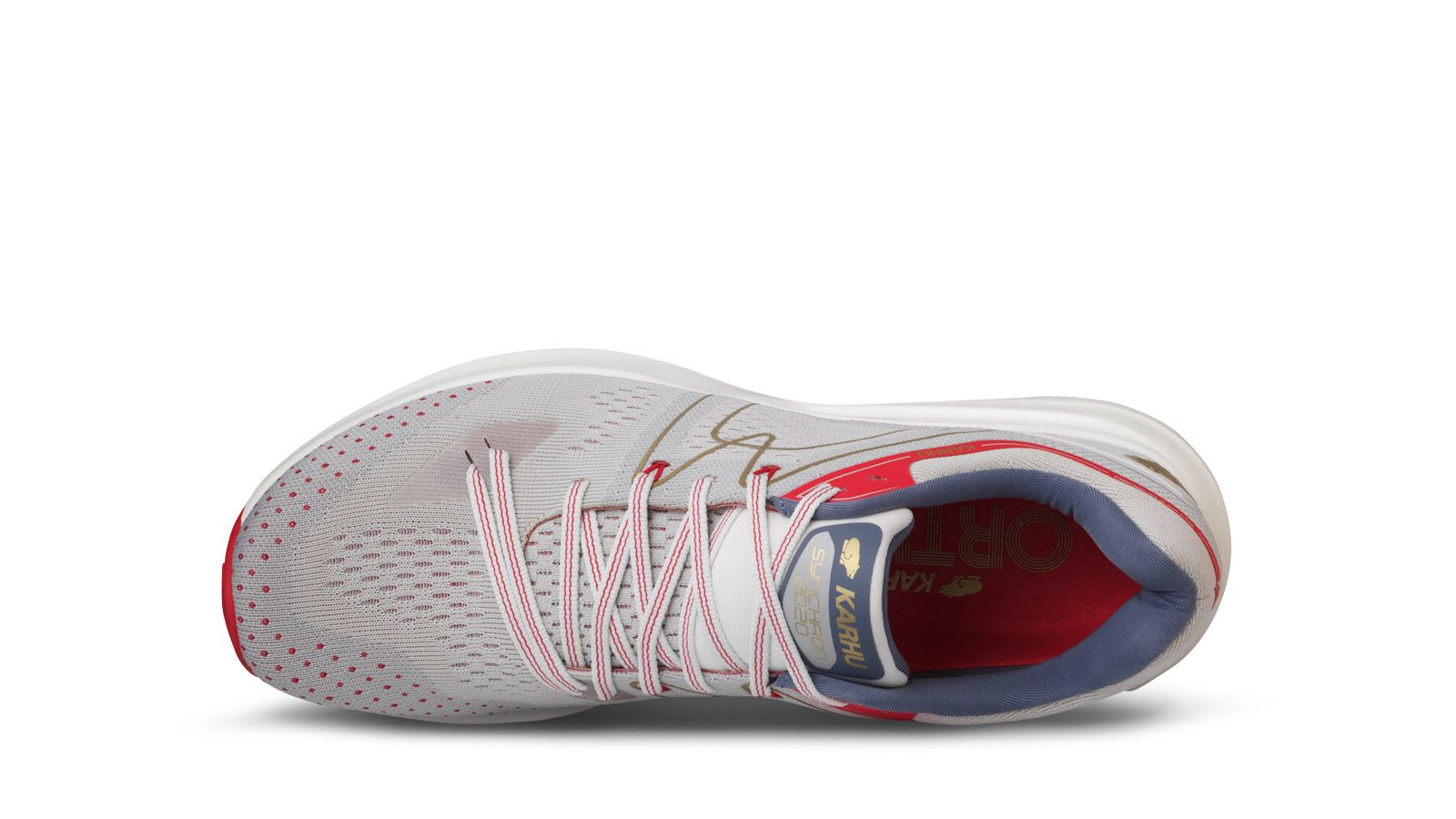 As a nod to the Synchron’s iconic past, the Ideal Knit mesh upper, shaped by Ortix, features the classic Karhu asymmetrical lace across the toebox to allow for micro-adjustments to the fit.