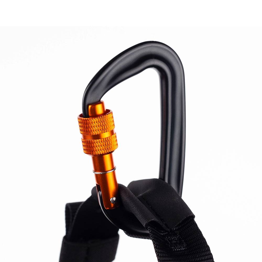This hiking belt comes with a sturdy and secure screw-lock carabiner for attaching your dog´s leash. This carabiner is rated to hold 300kg. If you encounter situations where you quickly need to detach your dog, we recommend buying our Quick release snap hook with a quick-release function.