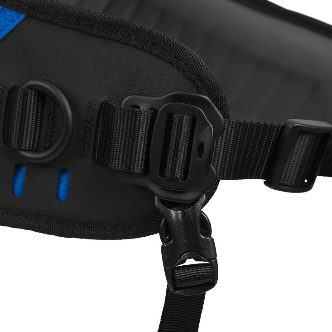The Ferd belt comes in three sizes and is adjustable around your waist and legs. The leg straps hold the belt from sliding up your lower back, but can easily be removed. Buckles made of high-strength aluminum and Hypalon reinforcements assure performance in extreme conditions. The backside logo is made of reflective material to provide high visibility in the dark.