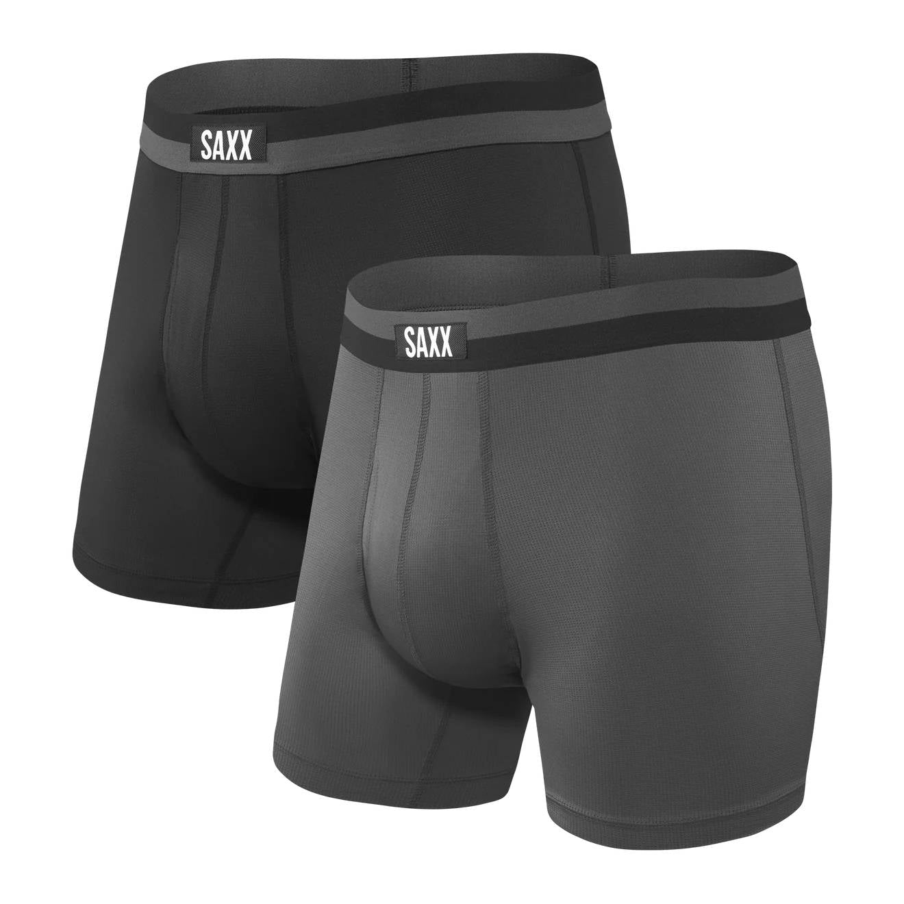Saxx Sport Mesh 2-Pack Boxer Briefs, Black/Graphite