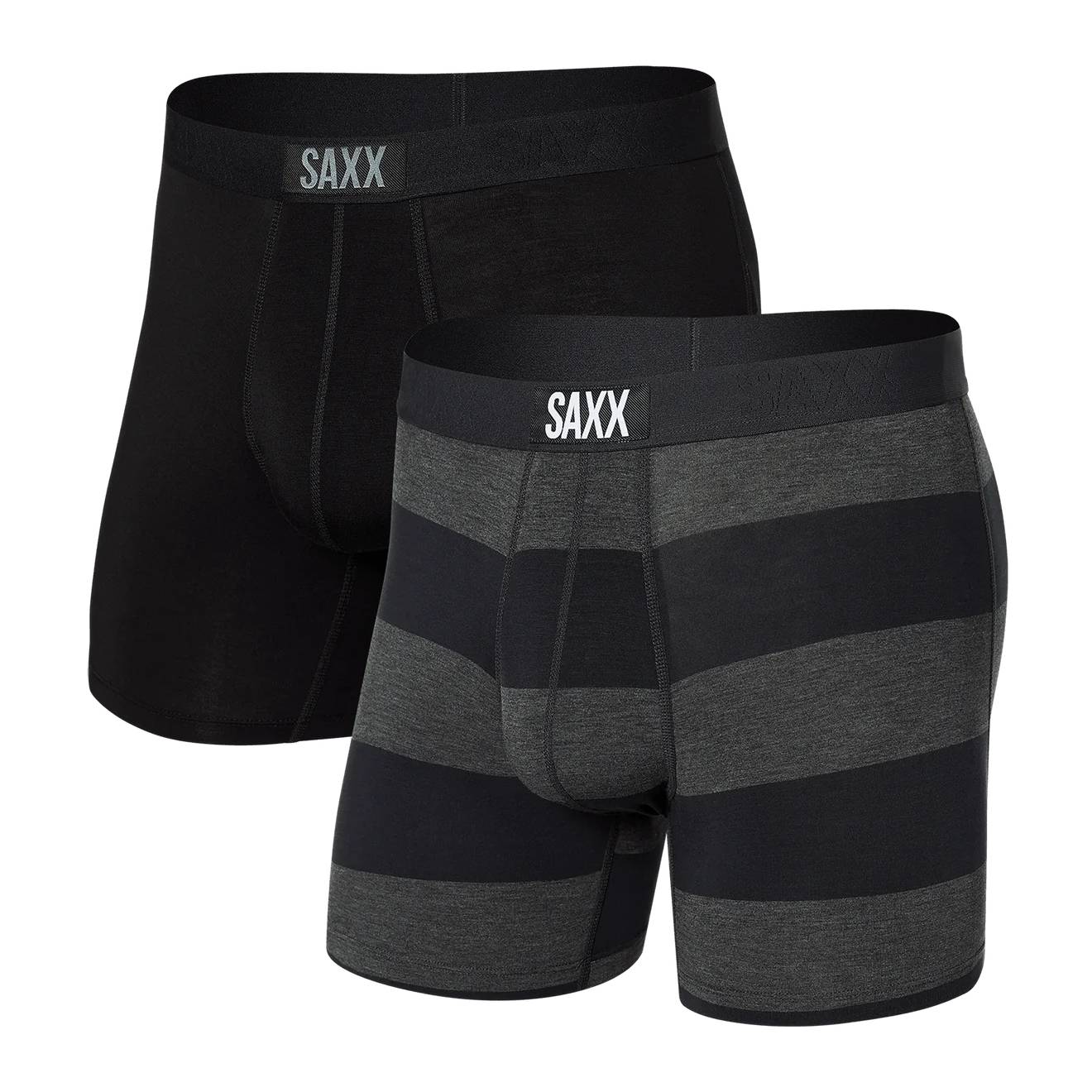 Saxx's best-selling Vibe Super Soft is made with naturally breathable, moisture-wicking fabric. A Boxer Brief with the BallPark Pouch®, Vibe is available in a wide range of prints. Two-pair pack.