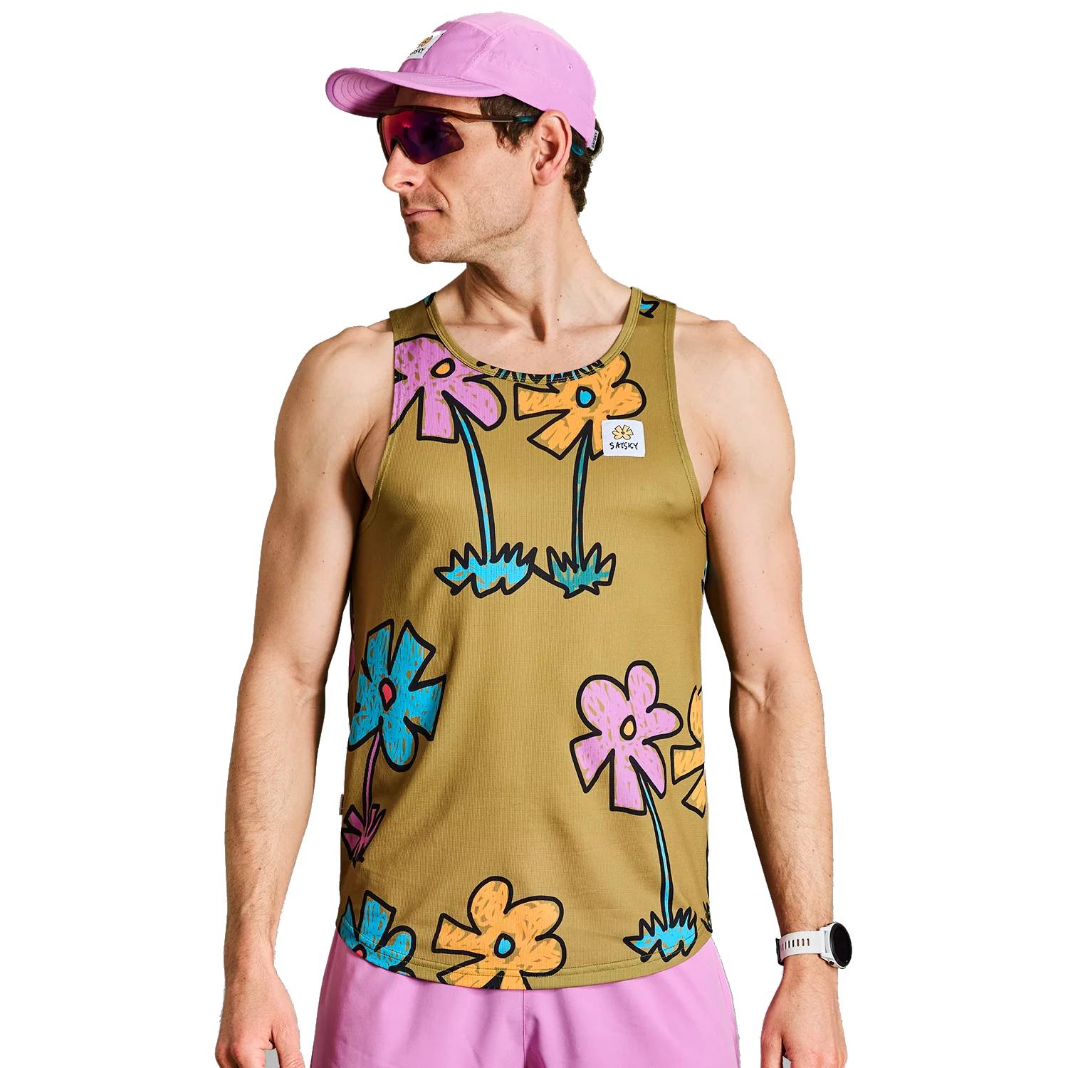 The SAYSKY Flower Combat Singlet is a regular race singlet in yellow with an allover flower print. The singlet is moisture-wicking and quick-drying, which ensures high breathability and increased airflow. The technical construction reduces the fabric’s ability to cling to your skin.