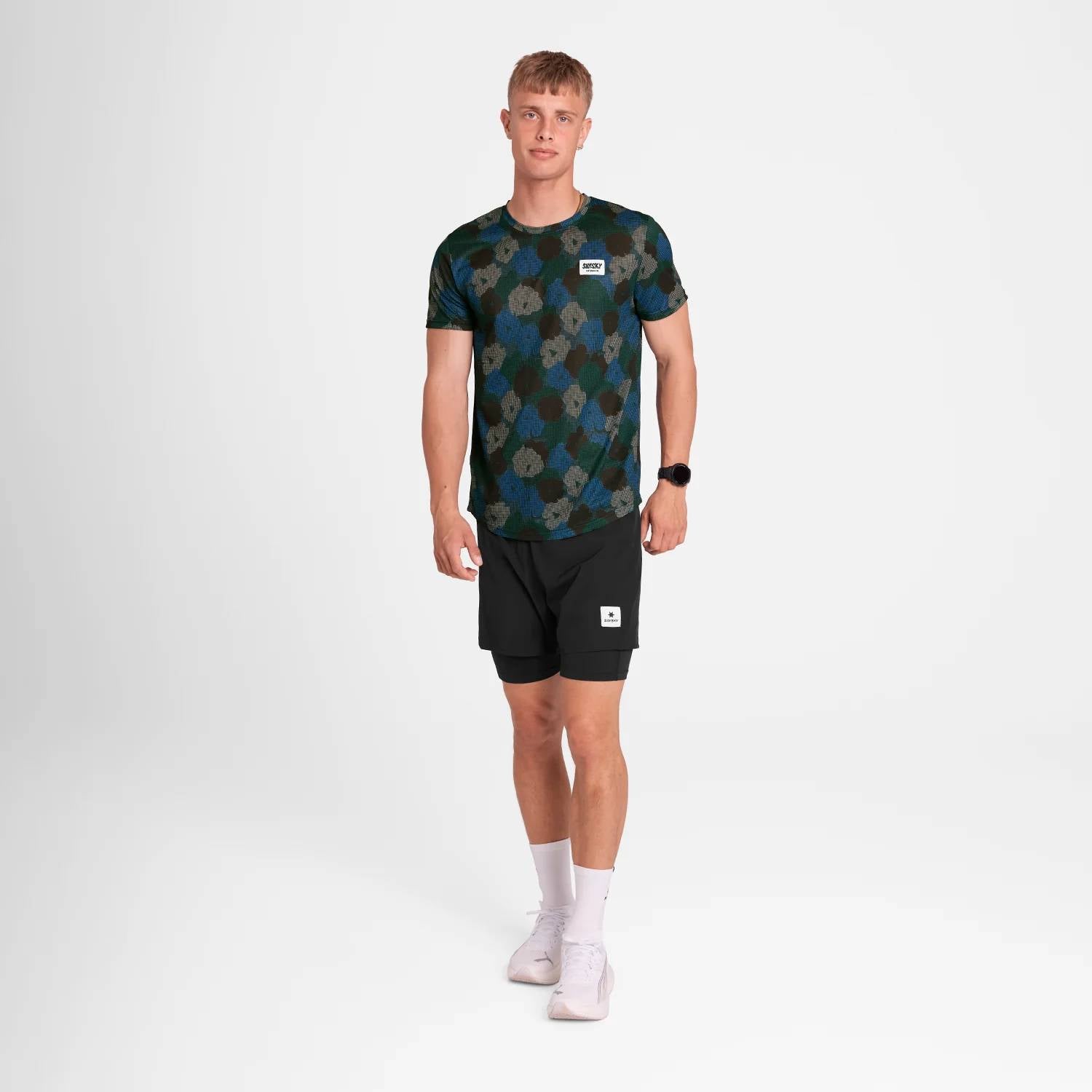 The SAYSKY Flower Combat T-Shirt is a running T-shirt for men with a Flower print and woven labels on the front and back. The shirt is moisture-wicking and quick-drying, ensuring high performance during your entire run. The technical construction reduces the fabric’s ability to cling to your skin. It is perfect for running in warmer weather, layering and as your race day fit.