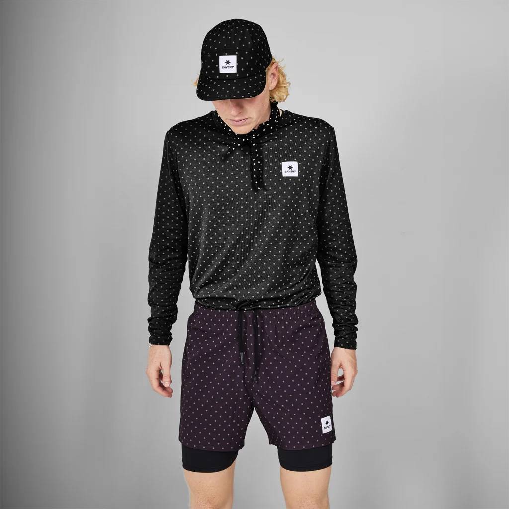 The SAYSKY Reflective Polka Pace Long Sleeve is a long sleeve running t-shirt with an allover reflective polka dot print. Our pace fabric is ideal if you're looking for a slightly heavier, yet super soft fabric with great wicking abilities.