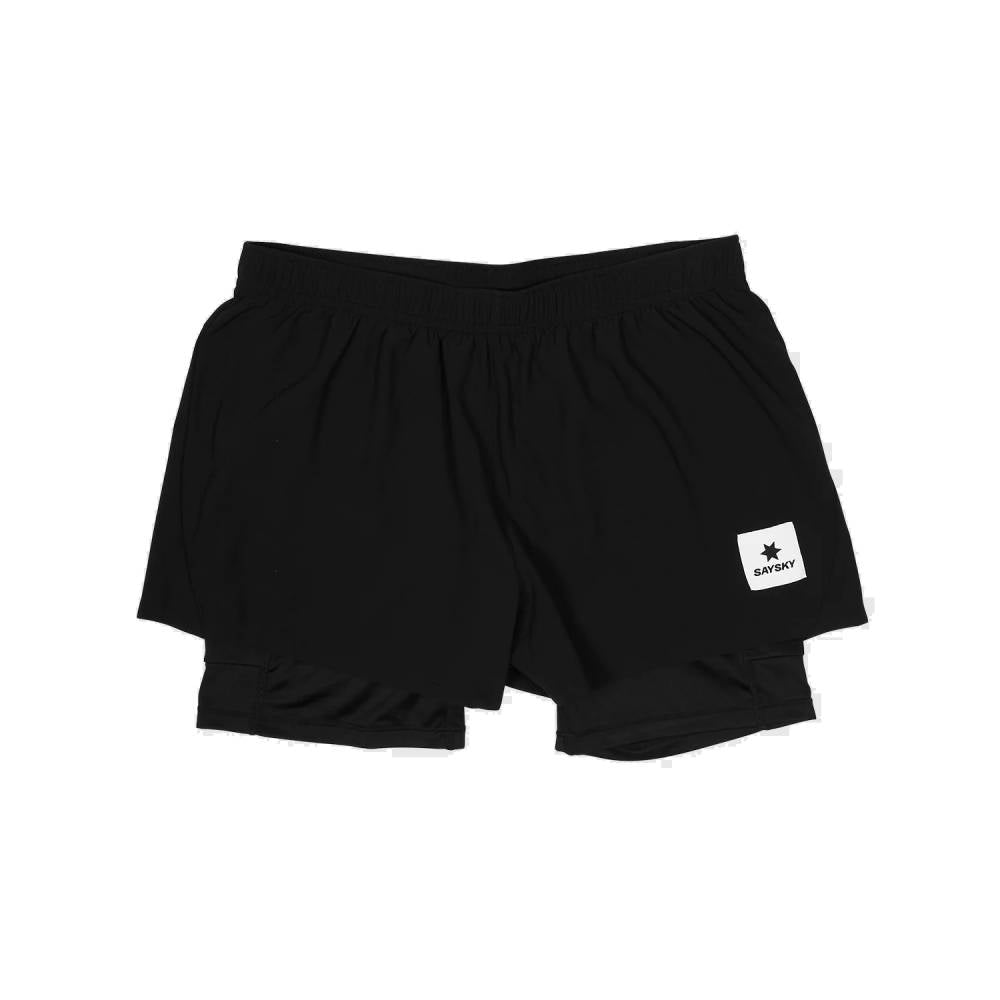 The SAYSKY Pace 2 in 1 Shorts 3" is one of our most popular styles. This version is for women and comes with black outer shorts and black inner pants. There's a woven SAYSKY label in white on the front and a SAYSKY logo on the back. The fit is regular and they'll serve you well whether on the run or in the gym. This style is also ideal for trail running.