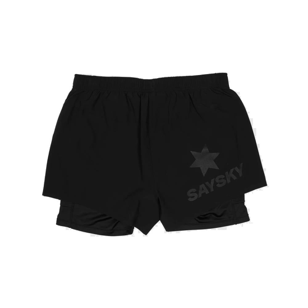 The SAYSKY Pace 2 in 1 Shorts 3" is one of our most popular styles. This version is for women and comes with black outer shorts and black inner pants. There's a woven SAYSKY label in white on the front and a SAYSKY logo on the back. The fit is regular and they'll serve you well whether on the run or in the gym. This style is also ideal for trail running.