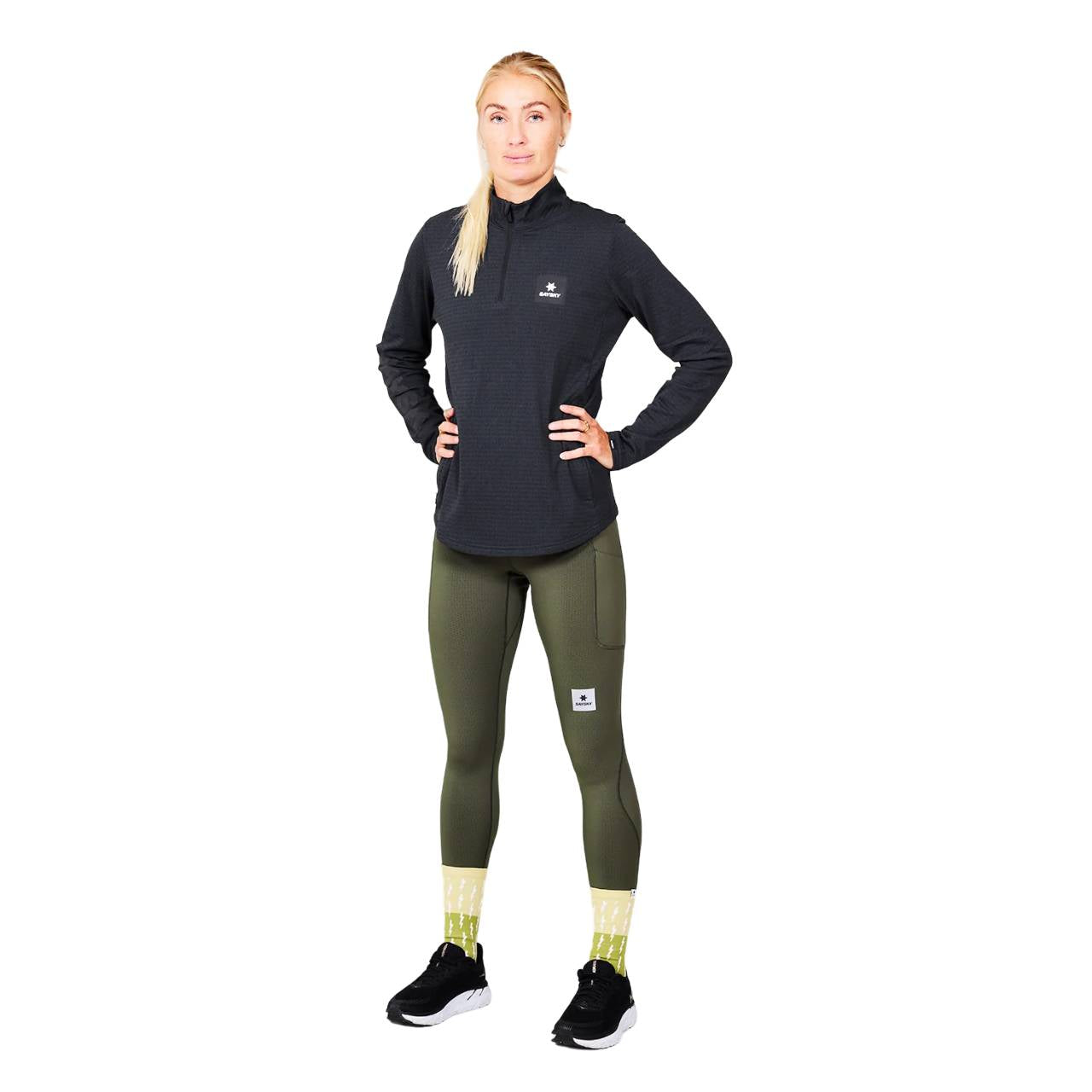 The SAYSKY Blaze Half-Zip Fleece is a women's running lightweight fleece in black made from 100% polyester. It features SAYSKY labels on the front and back and a big reflective SAYSKY logo on the right sleeve.