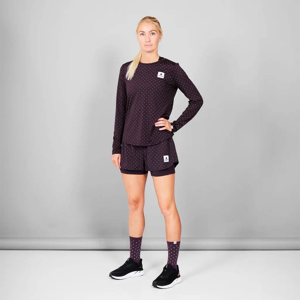 Saysky WMNS Reflective Polka Pace Long Sleeve, Black AOP