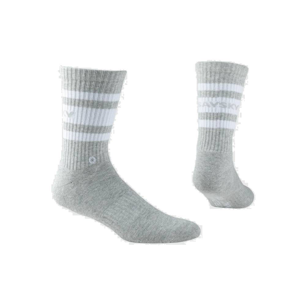 The SAYSKY Crew Socks are carefully created to give maximum comfort during workout sessions as well as in your leisure cruising. It's a pair of classic knit socks perfect for everyday use. They come in grey with white stripes and our WORLDWIDE RUNNING TRIBE statement knitted into the foot.