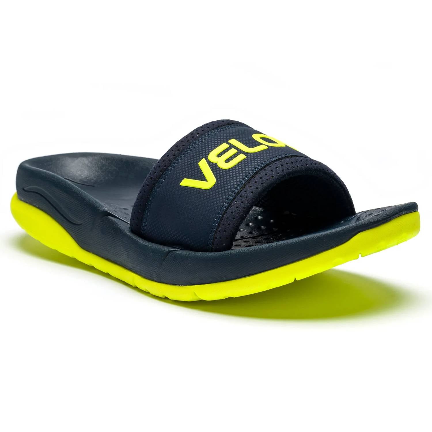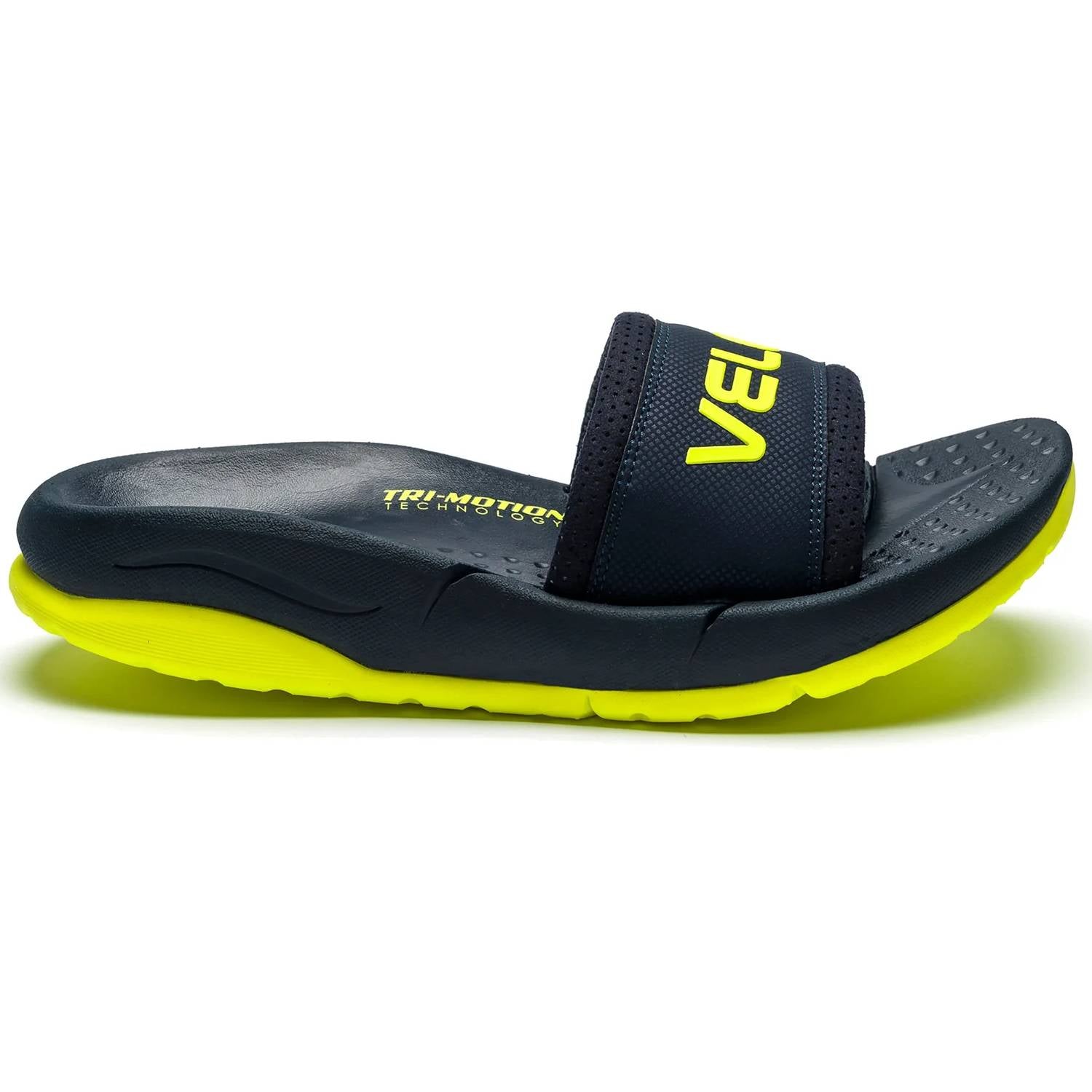 VELOUS Footwear Laguna Slide offers cushioned comfort, support, and flexibility with its Tri-Motion™ Technology and triple-density Foamotion foam for active recovery. The three-part design promotes natural foot motion, allowing quick recovery. The perfect balance of cushioning and support for active individuals.